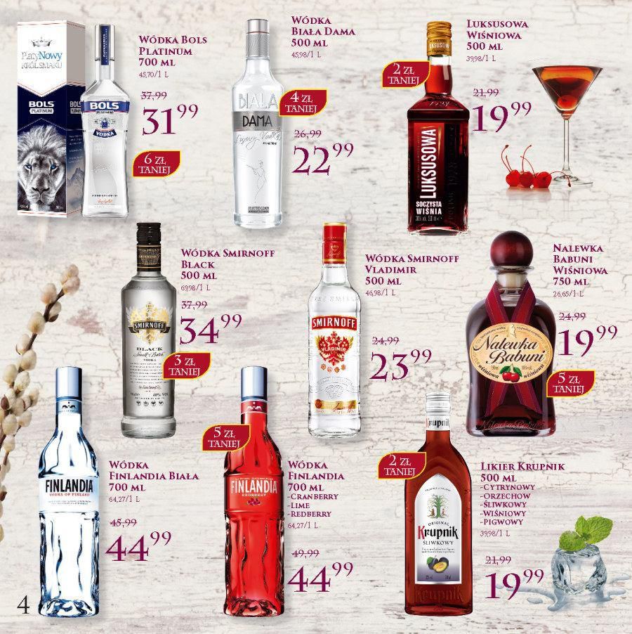 Bols wódka, Luksusowa wódka, Smirnoff wódka, Finlandia wódka, Krupnik wódka